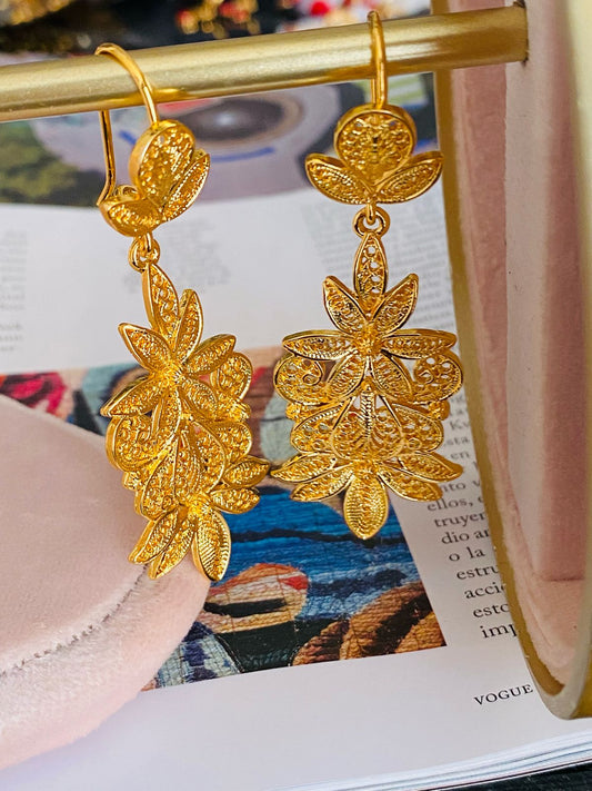 AF9205 Aretes Filigrana Oro Laminado Escarlata