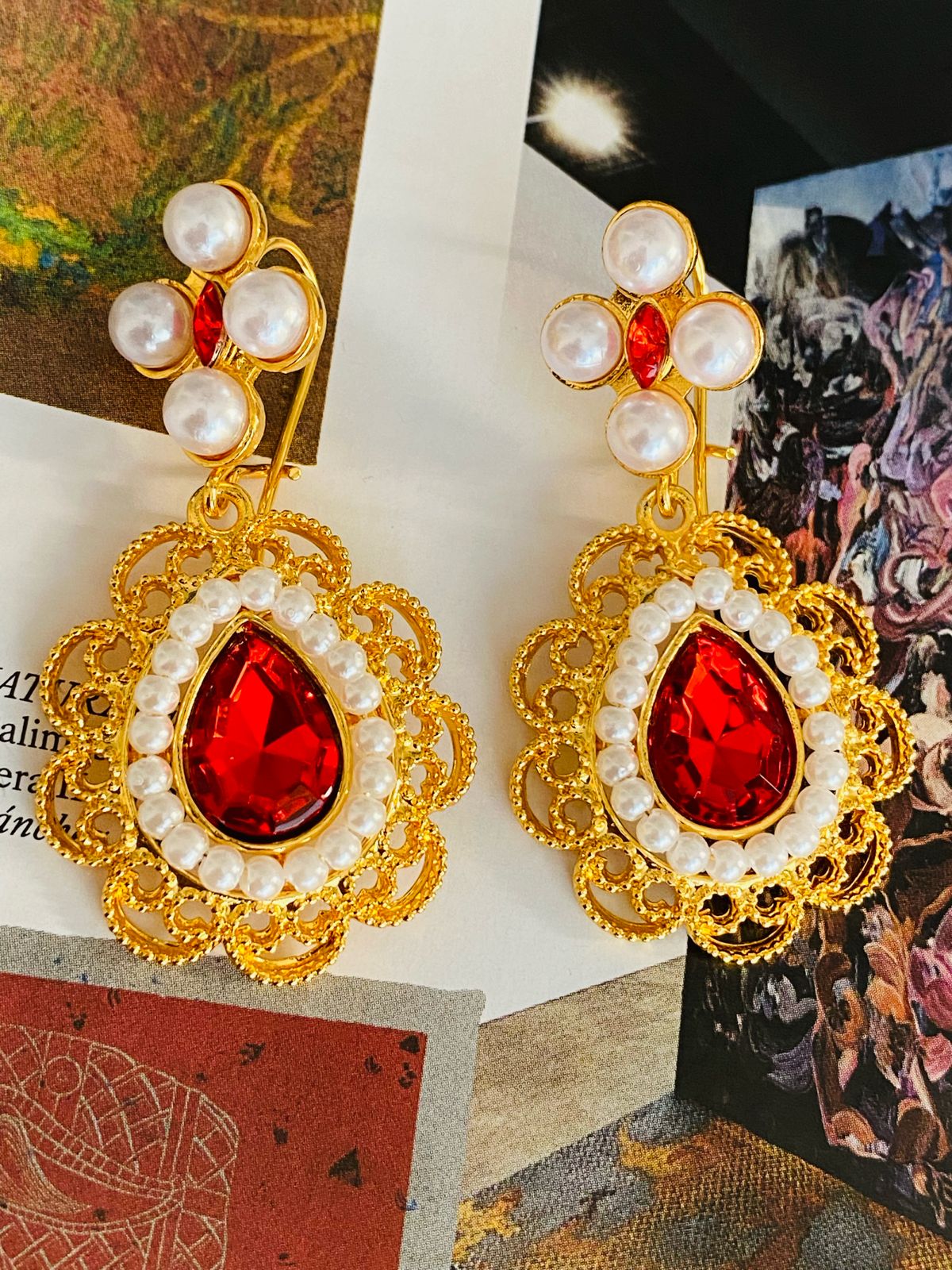 AF9205 Aretes Filigrana Oro Laminado Escarlata